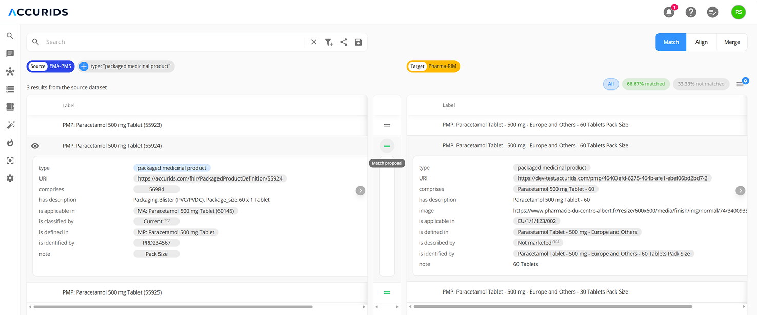 Compare and align your data with EMA PMS.